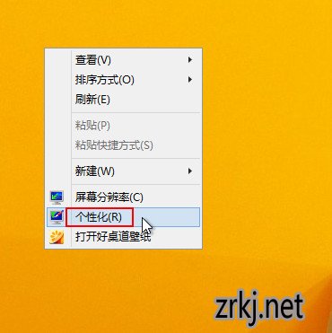 1、在桌面上右键菜单,选择“个性化”设置,如下图所示: